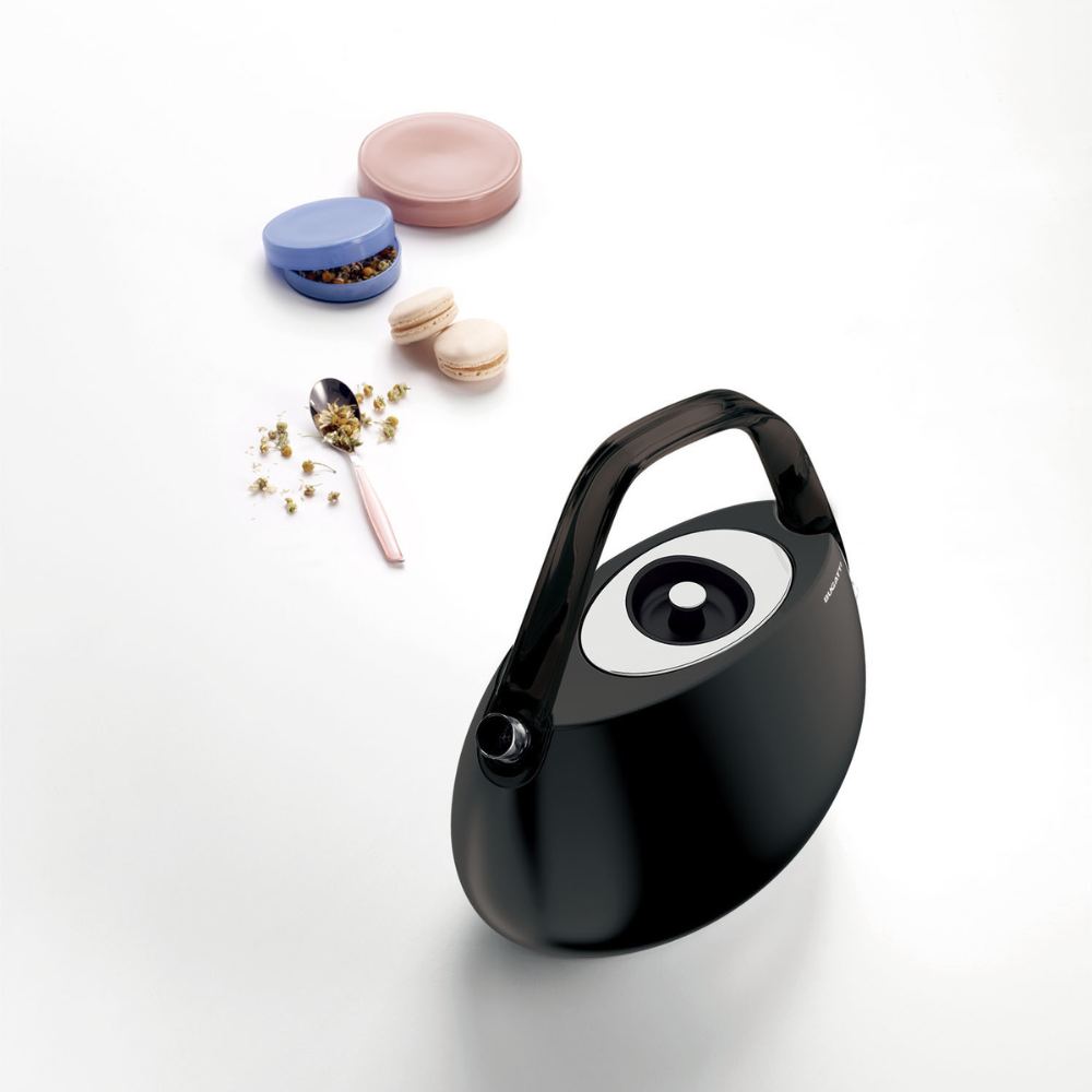 Jackie combines elegance and ease of use. With its soft, harmonious shape, taken from the award-winning Jaqueline electric kettle, and the charm of the 18/10 stainless steel of which its body is made, it starts up with a single touch. The body is made of 18/10 stainless steel, without plastic parts in continuous contact with water. The handle recalls a gush of water and is made of PCT Tritan.