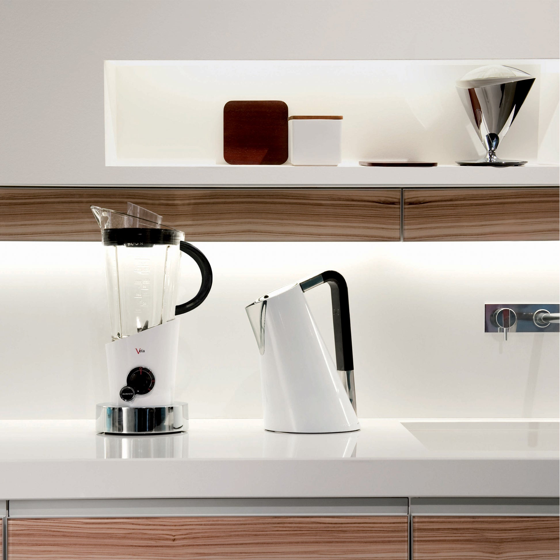 Vita is the electric citrus juicer that gives you energy throughout your day. In addition to its modern and slender design, inspired by the iconic "V" shape, Vita is a dynamic appliance: the electric juicer can be tilted to facilitate pouring.