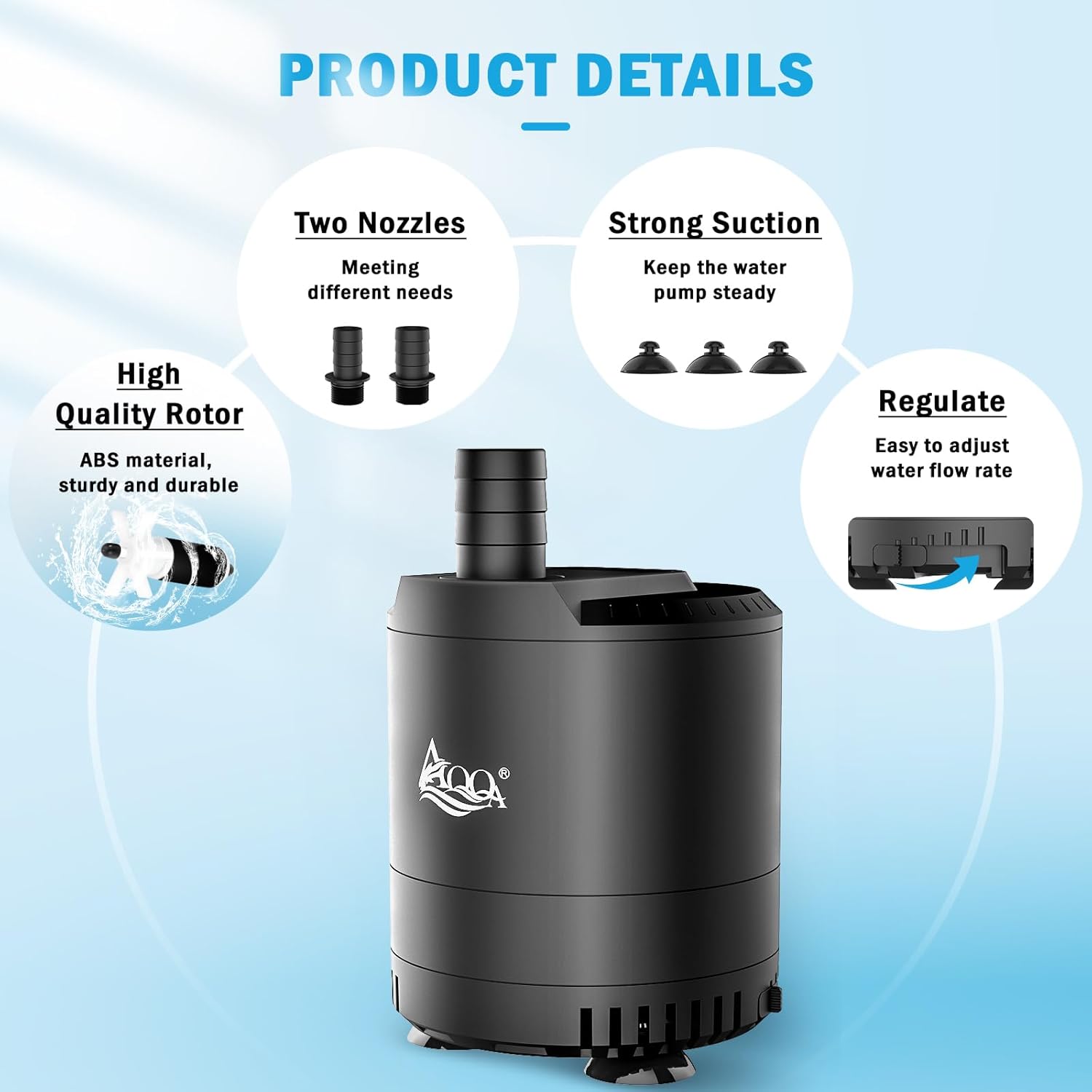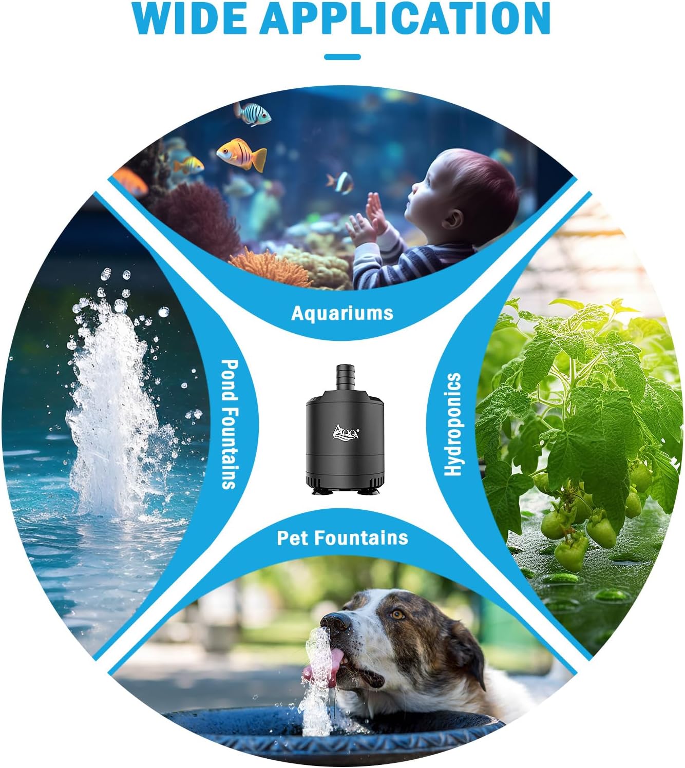 - The water fountain pump is a versatile and multi-functional device that can be used for various purposes such as water circulation pump, water removal pump, water fountain pump, pool draining pump, and more. It is suitable for aquariums, fish tanks, ponds, garden, hydroponics, and other water features.