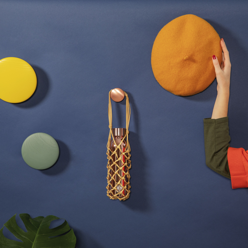 The reusable stainless steel water B Bottles Weaves Bags are inspired by the ready-to-wear woven shopping bag. A fashionable and practical accessory to carry your B Bottles with you at all times. They are made of faux leather and comprise more than 50 hand-woven knots.