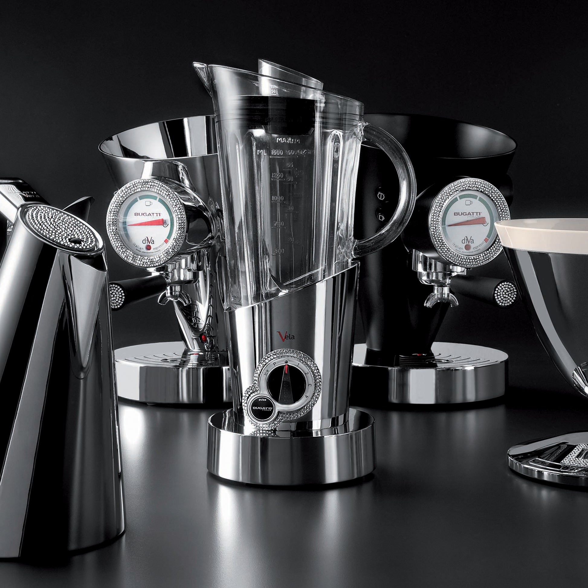 An exclusive, refined Bugatti domestic coffee machine with professional performance, where details make the difference. Indeed, the dial and the filter holder handle are decorated with 431 silver crystals - a jewel for your kitchen. With its iconic V shape, Diva Dettagli di Luce enables you to prepare espresso and cappuccinos just like at the coffee shop.