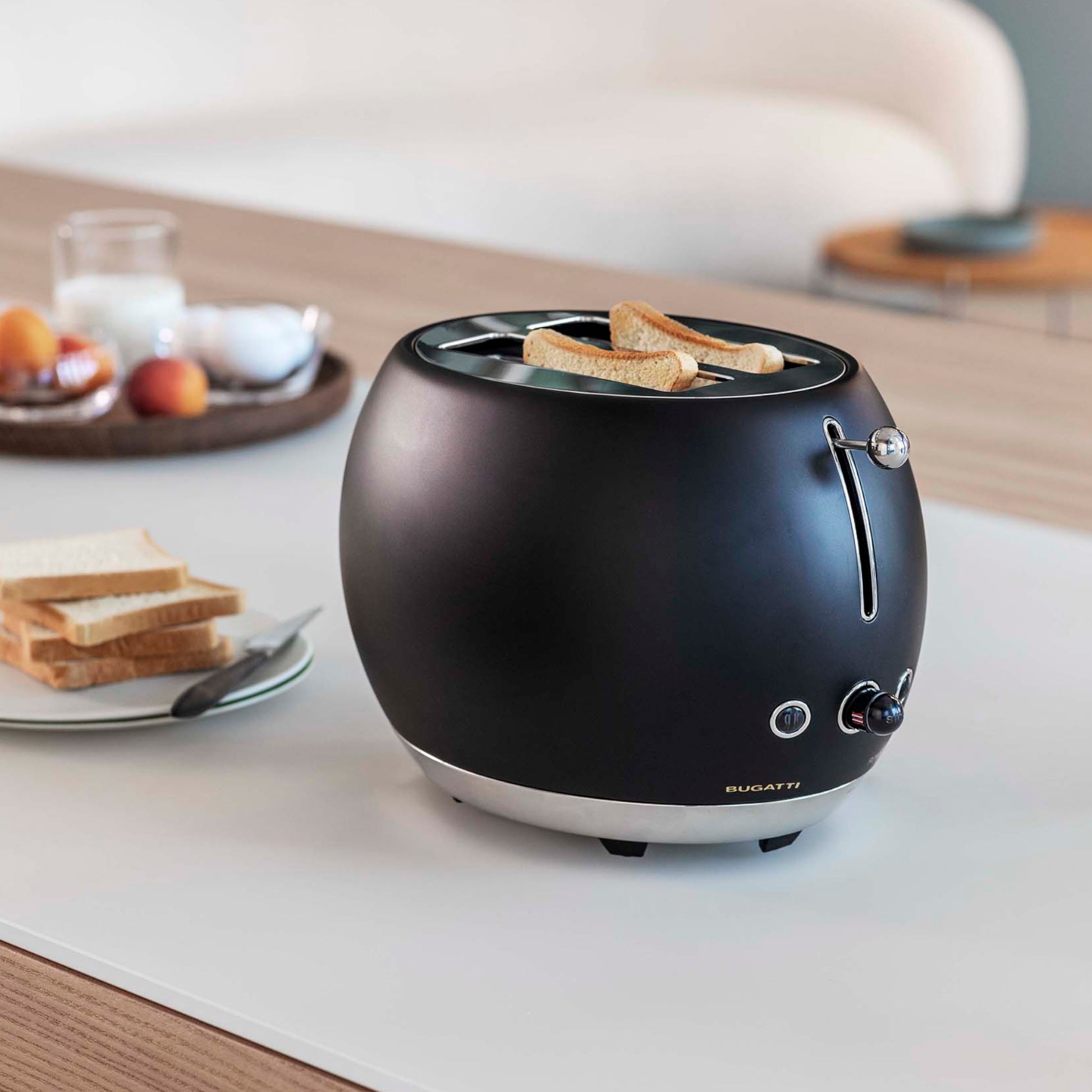 Romeo is the perfect companion for breakfasts and snacks and a valuable aid for lunches and dinners, giving the whole family a smile that will last all day long. The new Bugatti toaster, you can prepare toast, sandwiches, heat and defrost bread and small leavened items such as brioches, rolls, and focaccia.