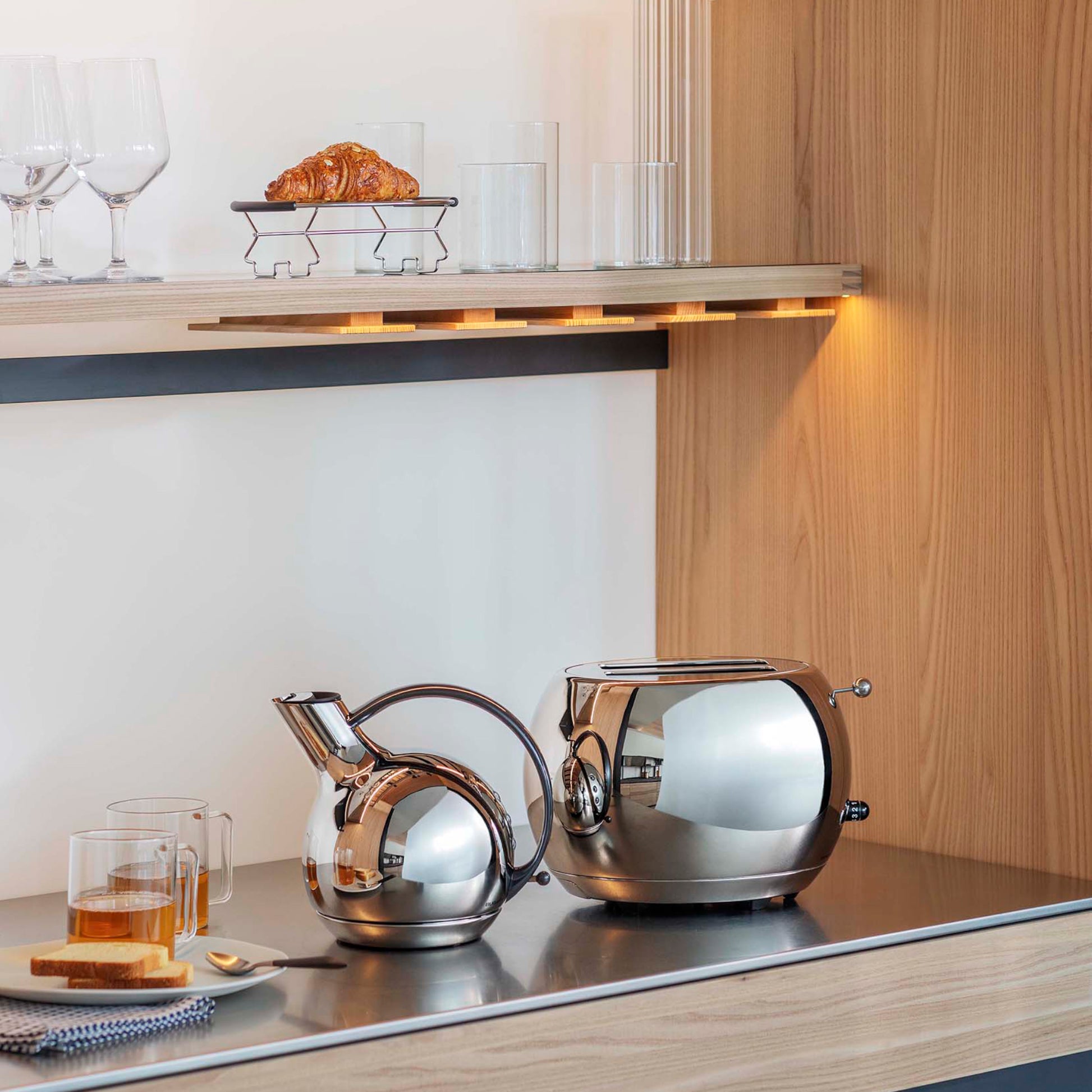 Romeo is the perfect companion for breakfasts and snacks and a valuable aid for lunches and dinners, giving the whole family a smile that will last all day long. The new Bugatti toaster, you can prepare toasts, sandwiches, heat and defrost bread and small leavened items such as brioches, rolls and focaccia.