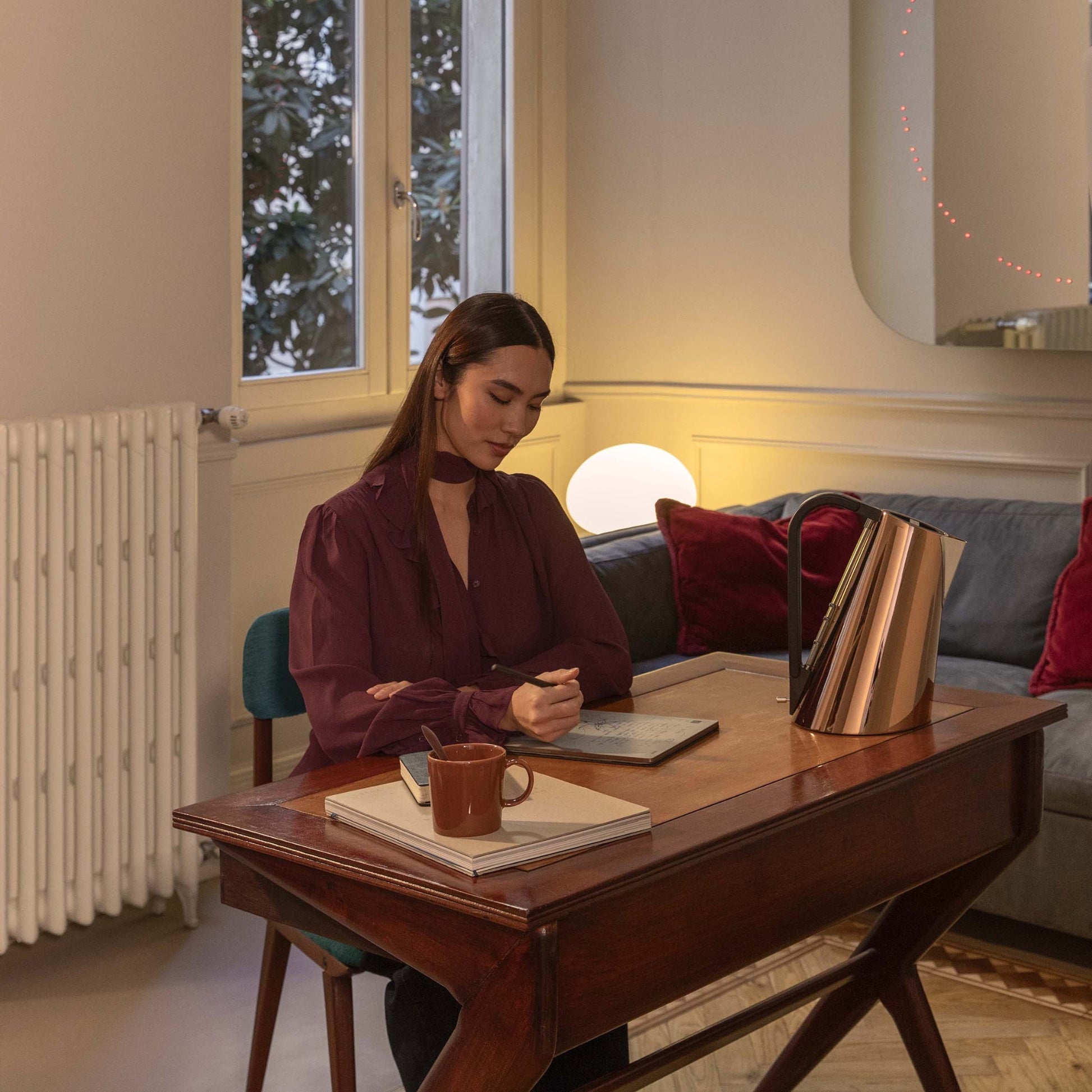 This electric kettle, with its sleek and elegant shape, is perfect for any interior setting. The essential character of Vera Easy is also reflected in its functions: with a single touch, the kettle starts and stops when the water comes to the boil.
