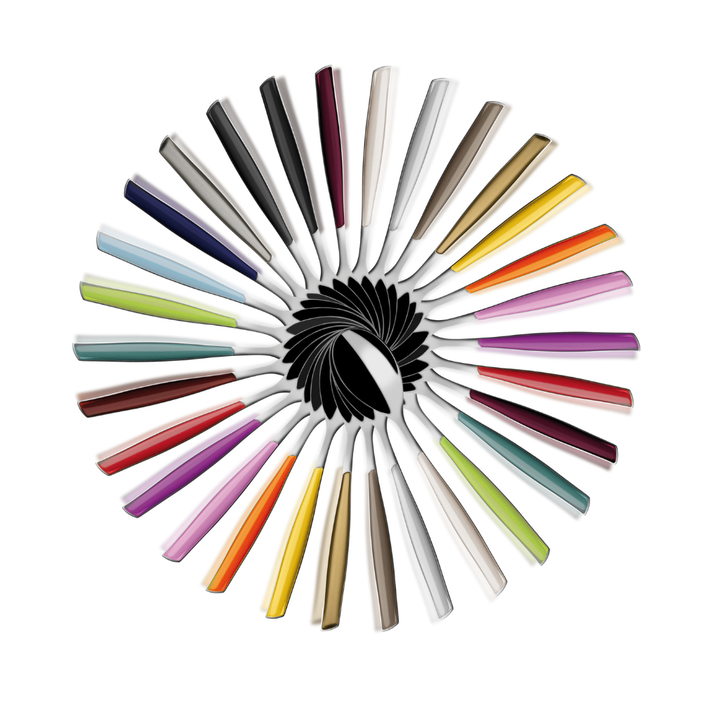 Glamour-colored cutlery is Bugatti's flagship product, a contemporary and fashionable choice to color your table with the style you love, without ever compromising on performance. They are made of 18/10 stainless steel with a SAN handle produced using Bugatti Pro-Tech System double stamping technology, which gives the color a transparent and always vivid effect.