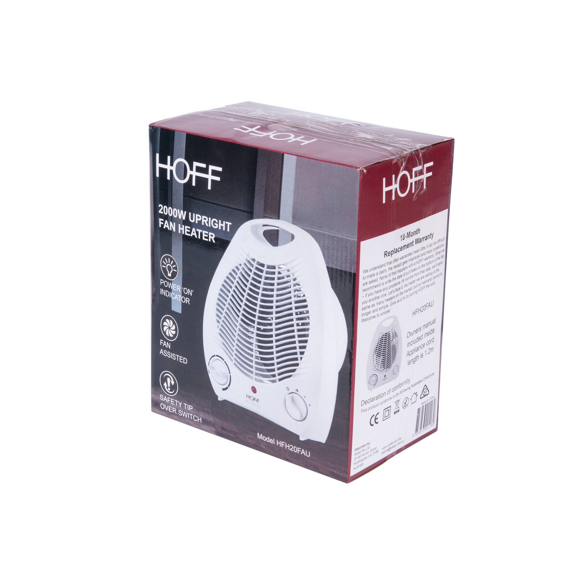 Stay warm and cozy with HOFF 2000W Upright Fan Heater in the cold winter month! HOFF simply means reliable products for the home. Turn to Hoff to turn worried off.HOFF's 2000W Upright Fan Heater is a compact and reliable heater with an easy-carry handle and lightweight body. Two heat settings with a fan assistant allow you to switch between Low or High to warm up a small room without wasting energy.
