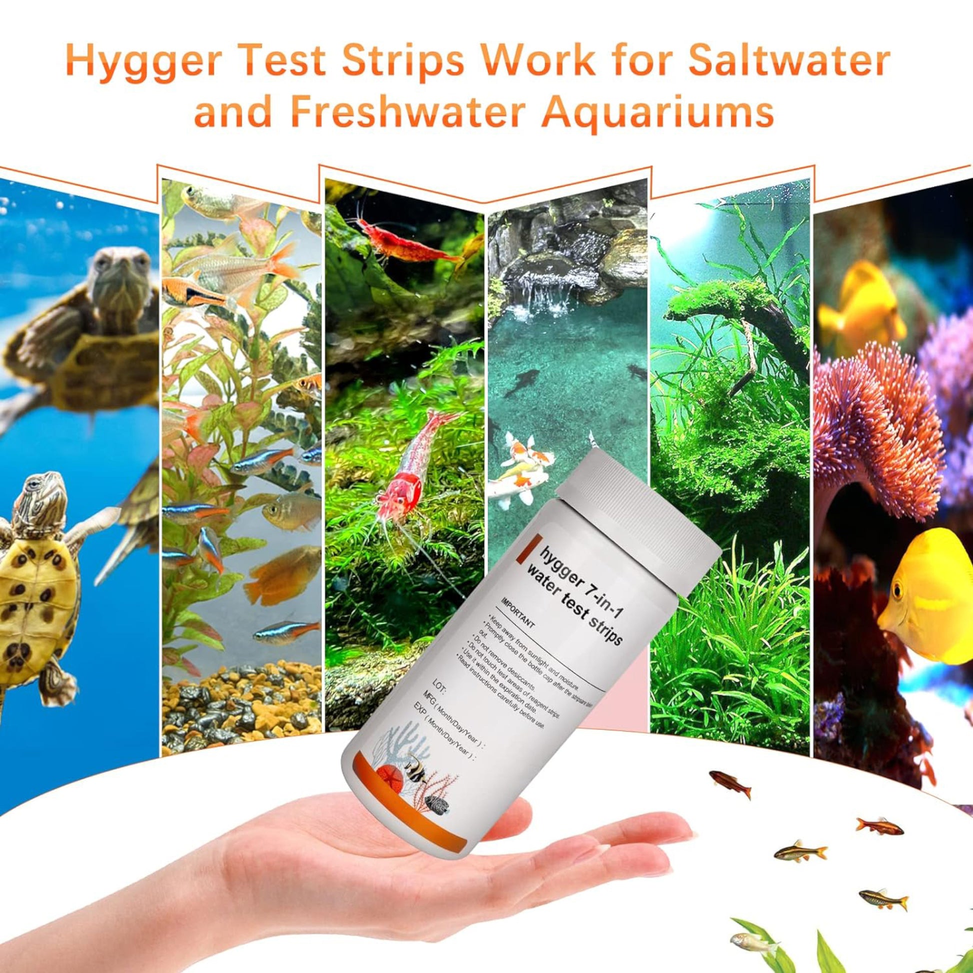 Aquarium test strips monitor 7 crucial water parameters and changes for freshwater and saltwater aquariums.