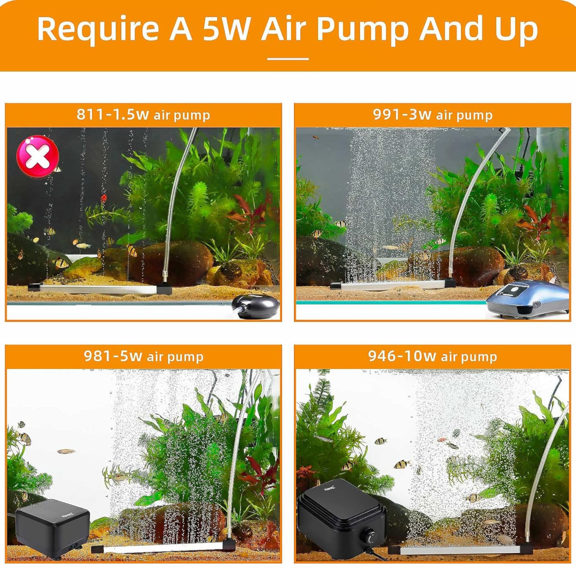 - Air bubbler creates a fantastic bubble curtain, the abundant micro and uniform bubble wall that enhances a dreamy appeal for fish tanks, keeping your fish and plant healthy, and adding an amazing look to the aquariums