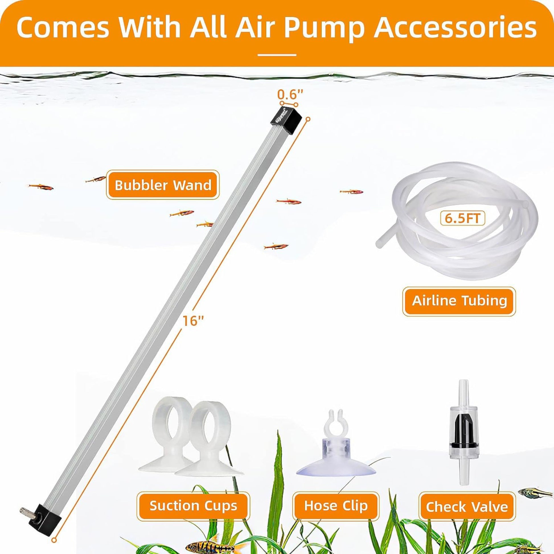 - The aeration strip kit needs an air pump (not included) 5 W or up to release bubbles out of the bubble bar