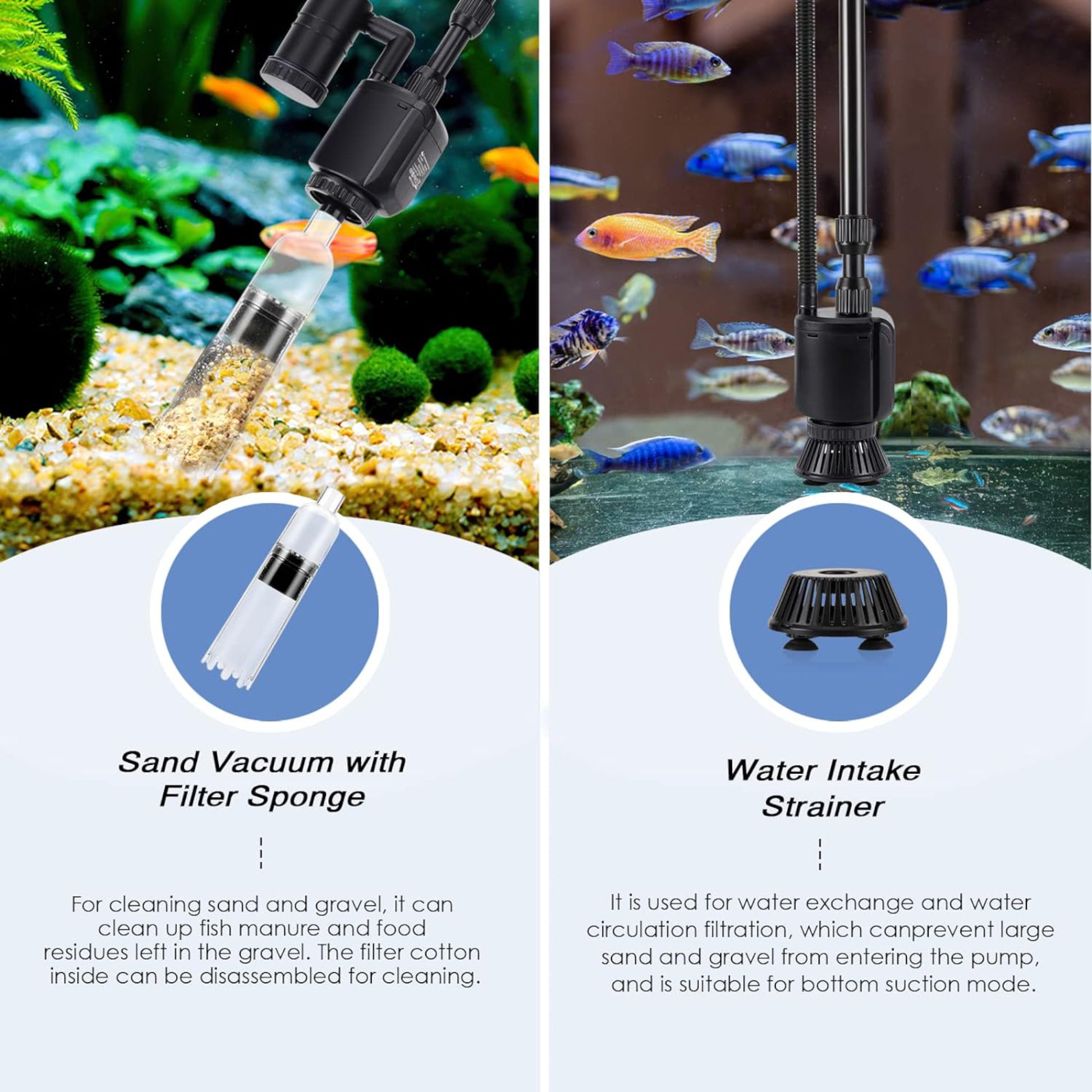 - Compared with the traditional siphon water changer, the new electric water changer can be used whether it is pumping water from high to low or from low to high, and it is not limited by water pressure