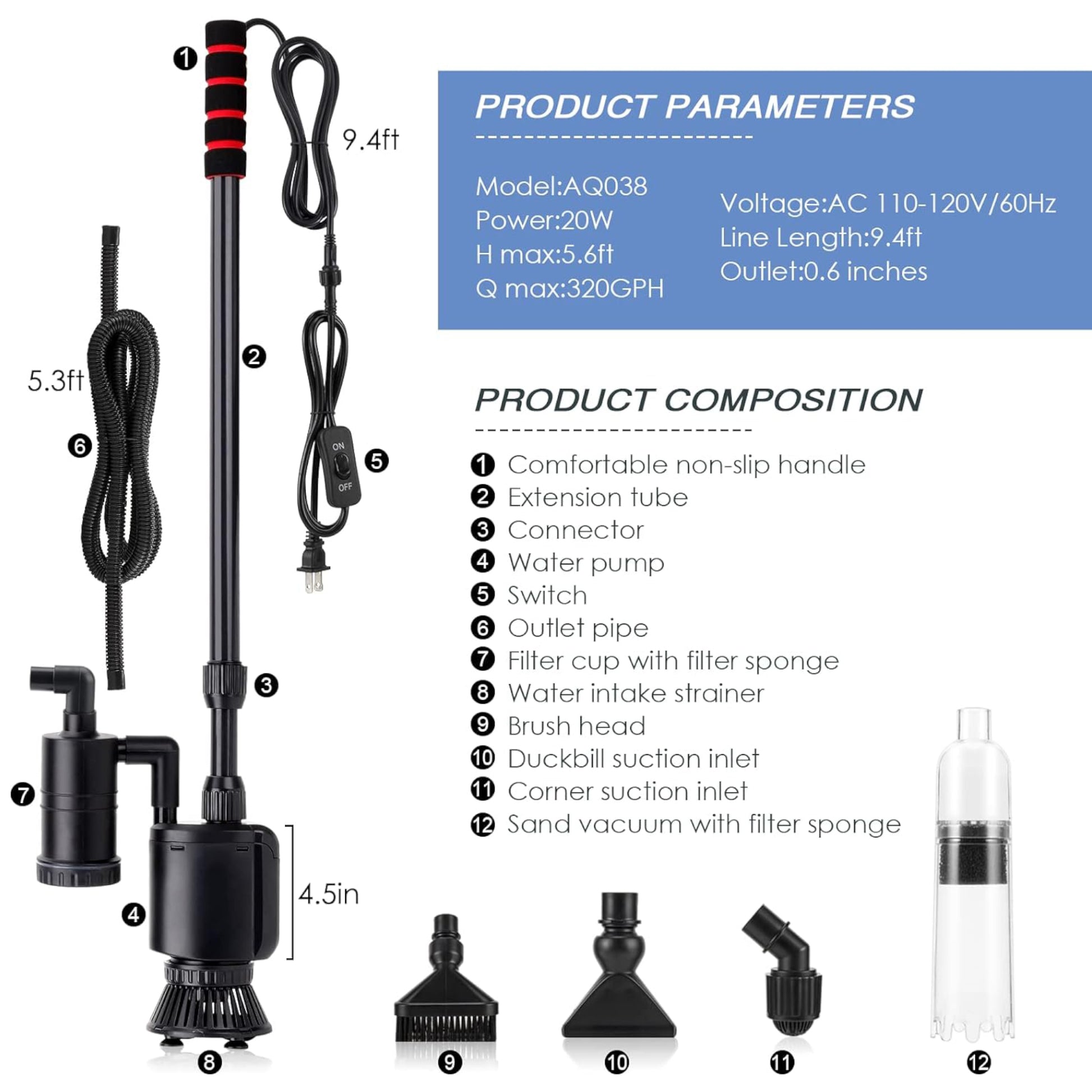 Energy saving & powerful fish tank siphon vacuum cleaner.