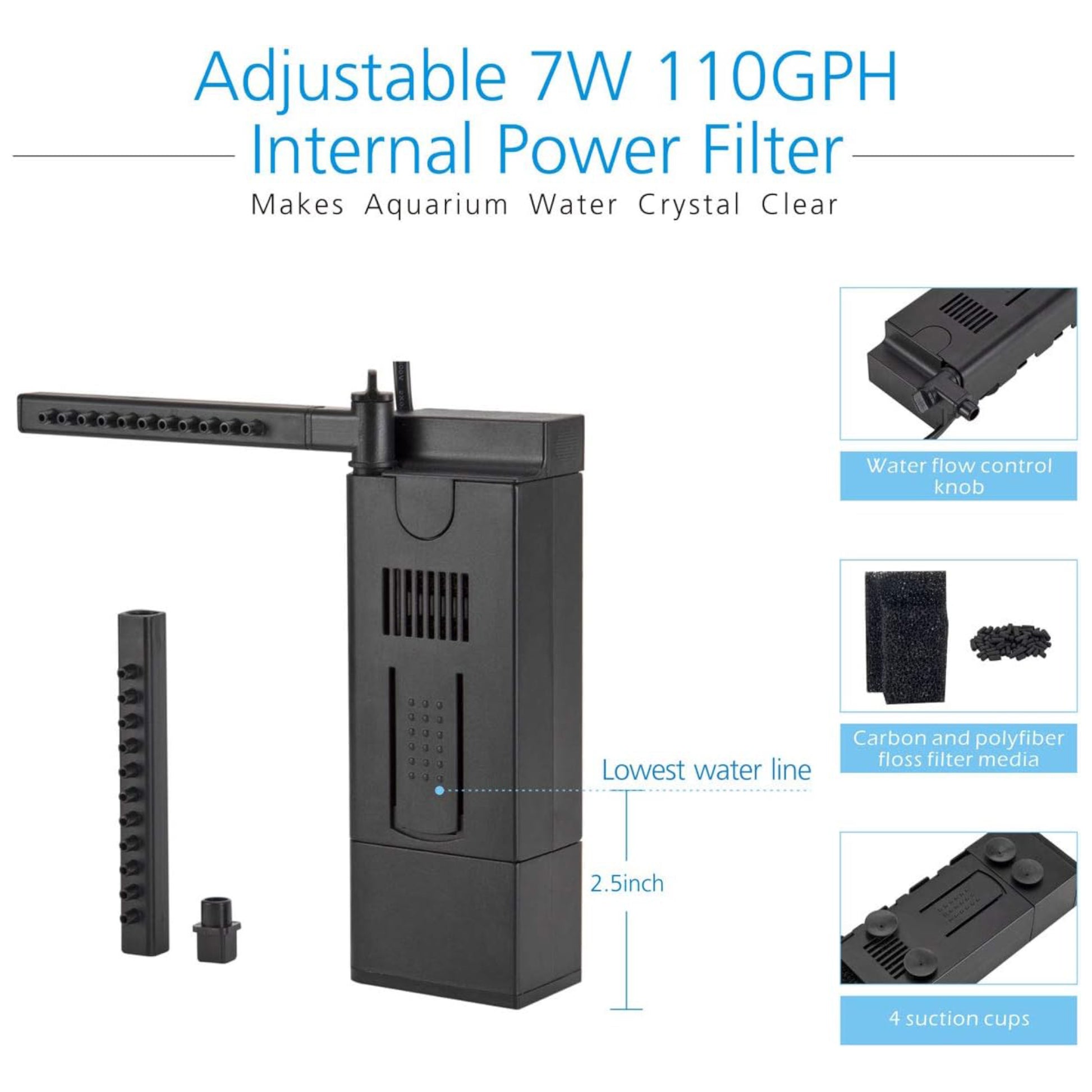 - The power filter is fit for tanks sized from 2 to 8 gallons