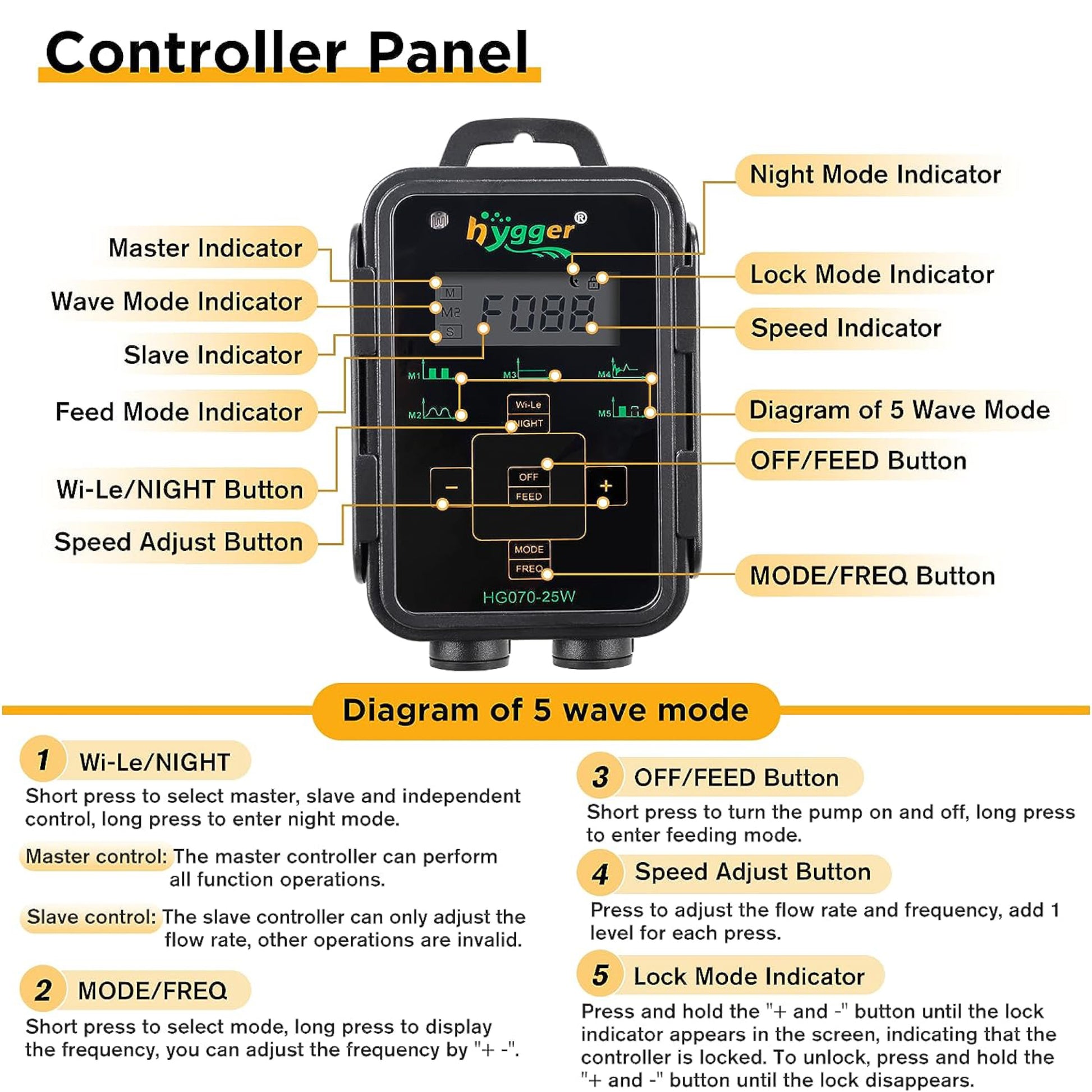 - The pump has various options for your aquariums including 1-100 flow rate levels and 1-100 frequency levels