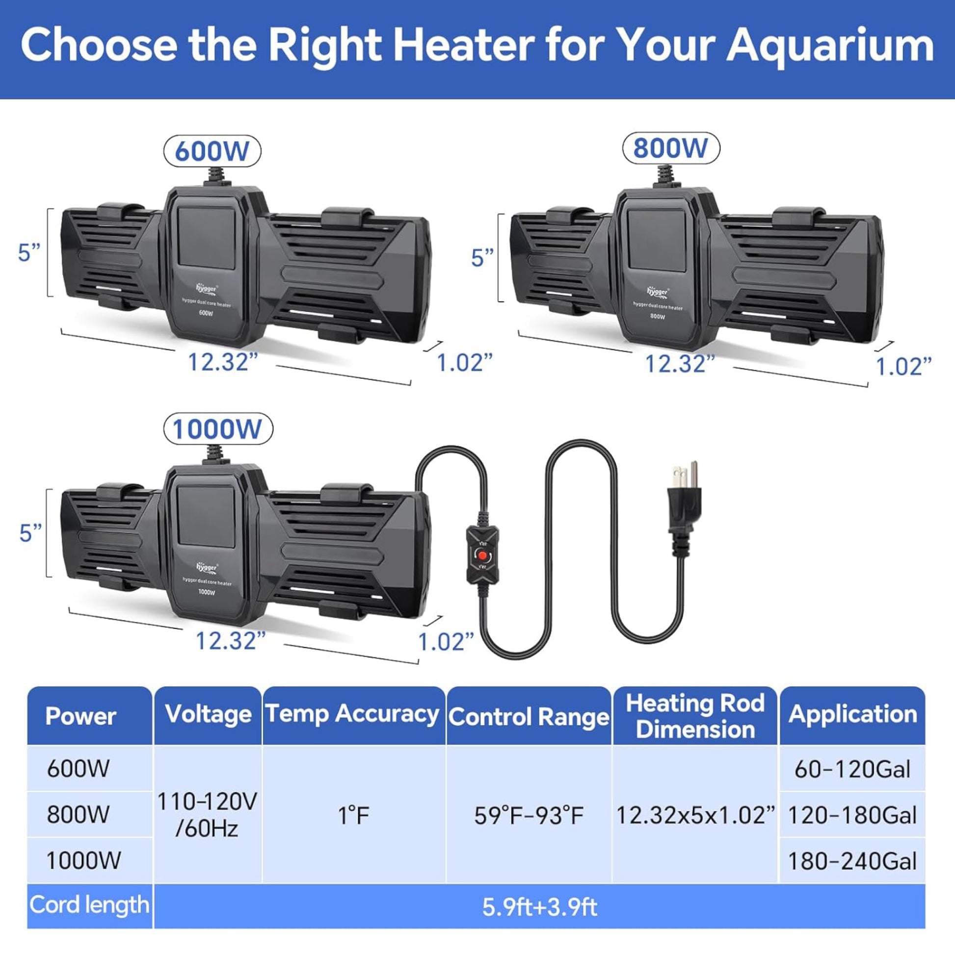 - Explosion Proof: The hygger variable frequency heater is made of explosion-proof quartz glass and the most thermally stable nickel-chromium wire to transfer heat to the water quickly and steadily. The heater shell cover is made of heat-resistant ABS material, which can keep your aquatic pets safe.