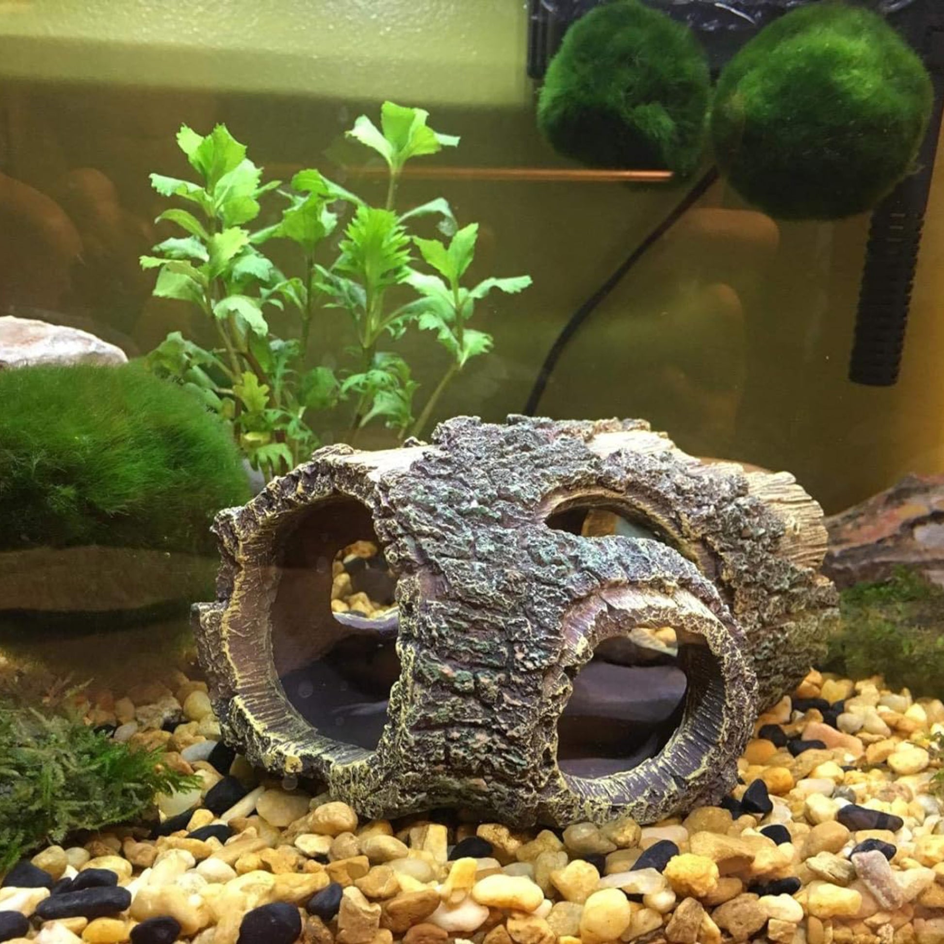 Suitable for a hermit crab, crayfish, suckerfish, axolotl, guppies, blue rams, chained loach, clownfish, elfish, zebra danio, black neon tetra, etc. Your small pet fish would be super happy to swim in and out of the trunk holes to sleep, rest, hide, play, and breed.