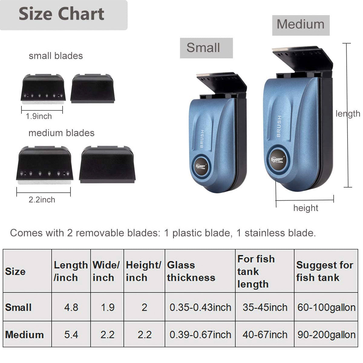 - Wide Application: The magnetic tank cleaner brush comes with 1 stainless blade and 1 plastic blade, so it can be used to scrape hard algae or mineral deposits from the glass tank. The blades are easy to put on and off, and if you don't want to use the blade, you can just use the algae scraper to scrub. It can also clean the fish tank inside out.