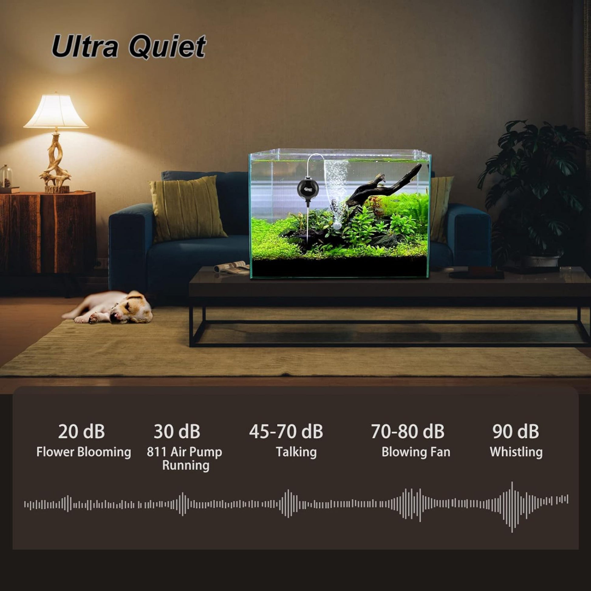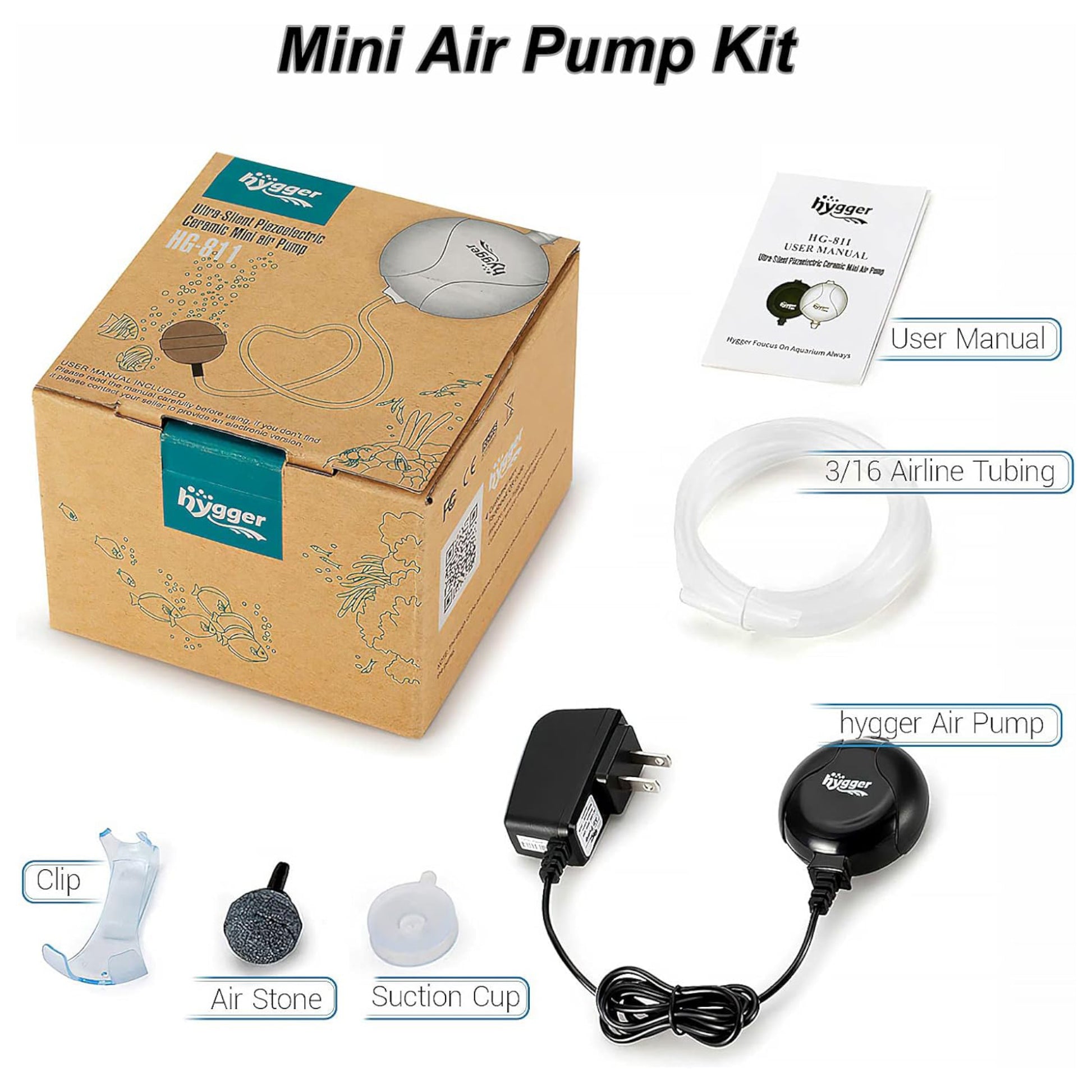 Unlike traditional air pumps, the Hygger mini air pump is driven by a thin piezoelectric ceramic plate, and has no motor or other mechanical equipment. It is very quiet and fit for fish tanks or fish bowl placed in bedrooms, living rooms, and offices.