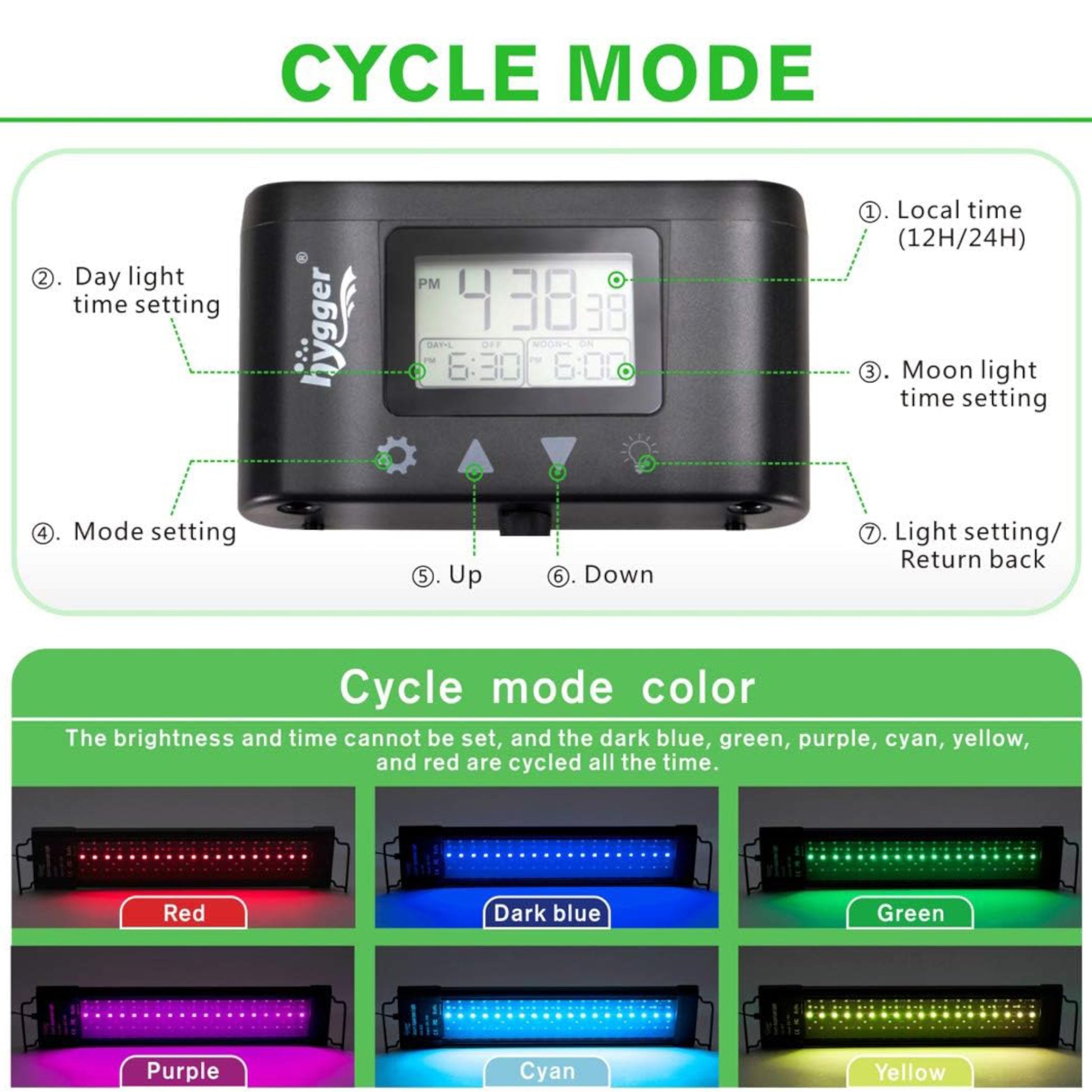 - Ten levels of brightness and seven different colours in Hygger LED aquarium lighting, which makes it suitable for different light requirements and a wide variety of applications