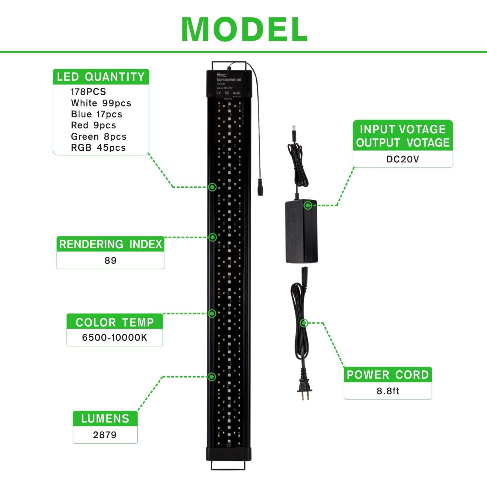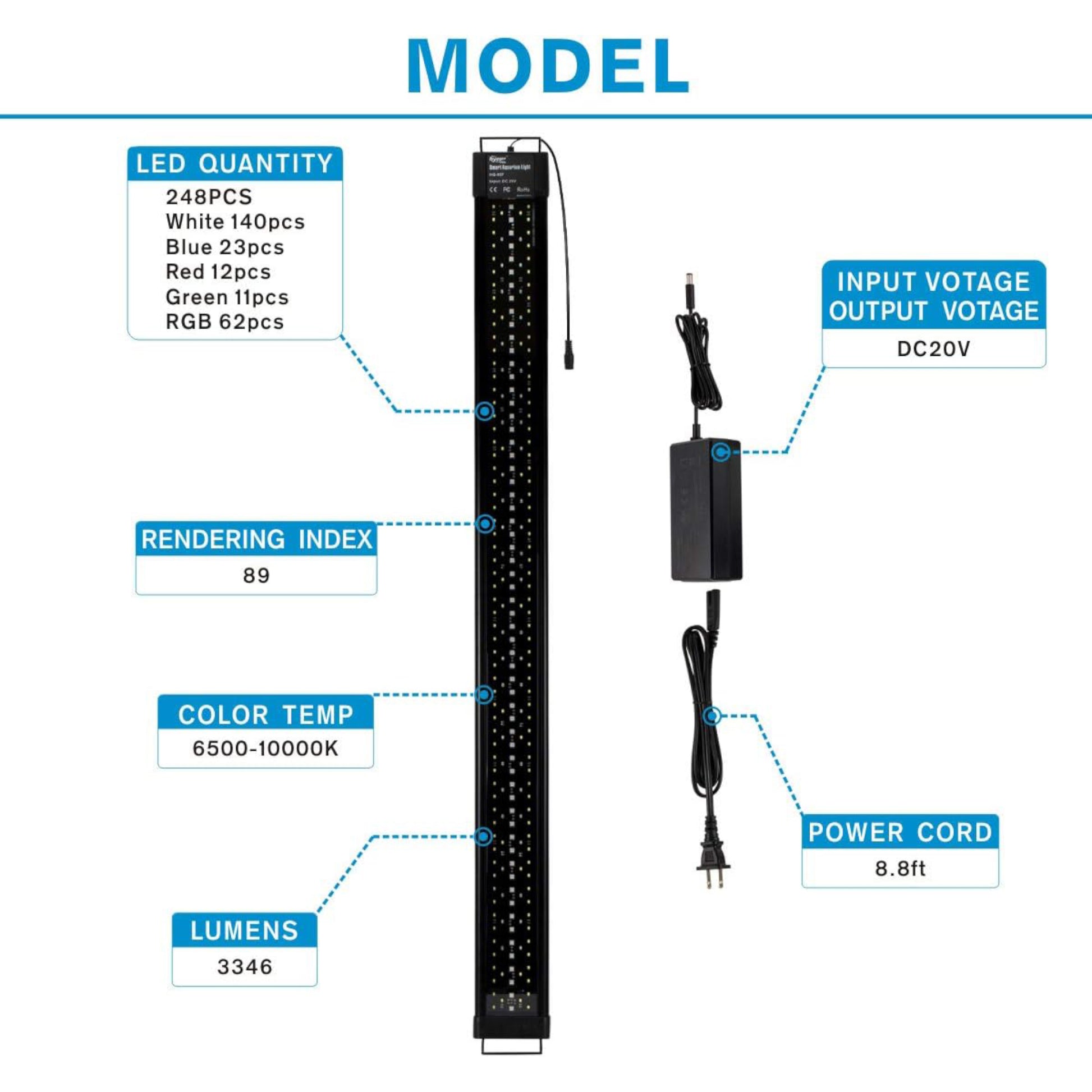 Programmable, gradual 24-hour light cycle settings (sunrise, midday, sunset, and night), auto on and off. It can create optimal conditions for your fish and aquatic plants.