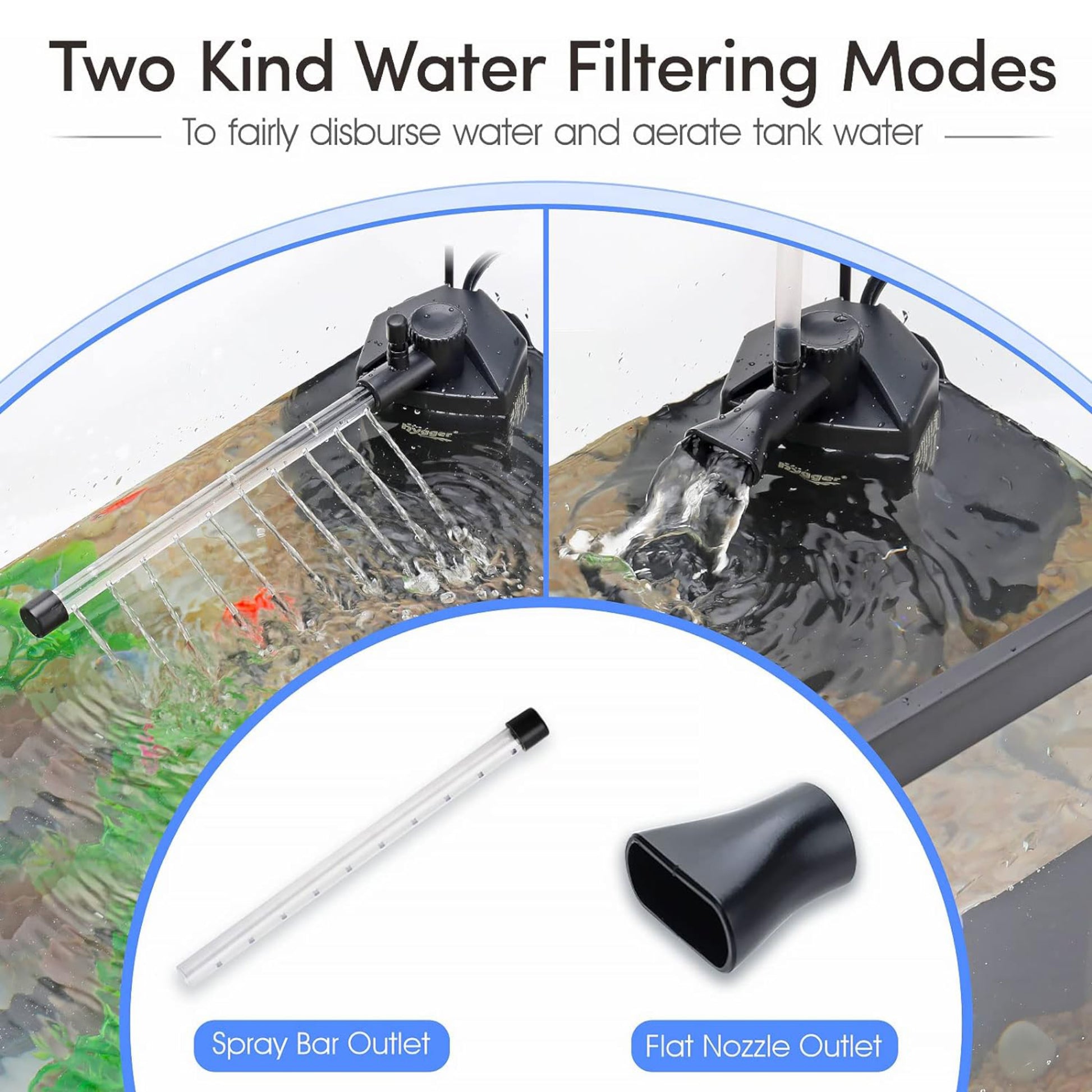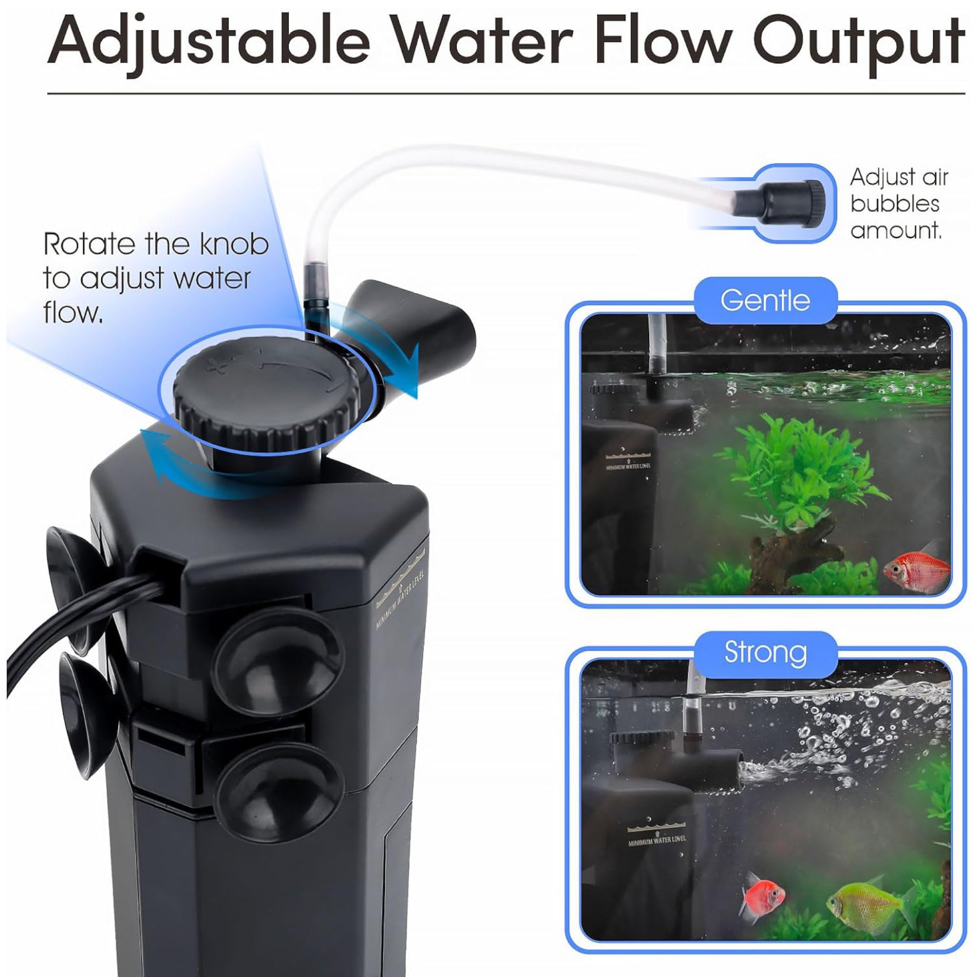 - Adjustable & directional water flow output and a spray bar option that distributes water evenly through filtration and works well as a powerhead for water circulation