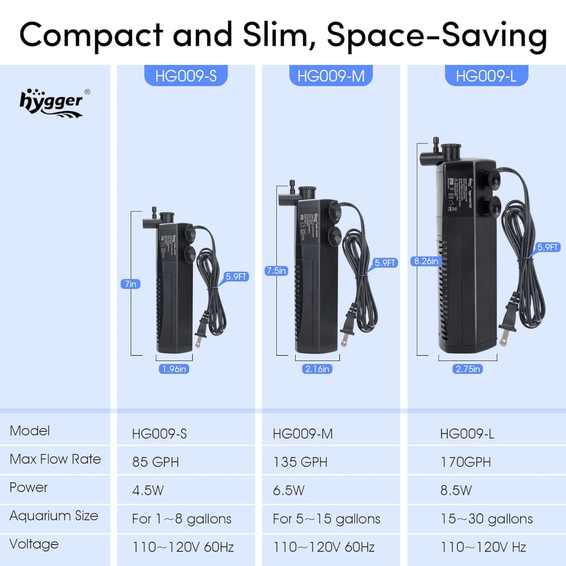 - Aquarium filter is effortless to set up, small, can sit in shallow water, it can be used on 19-113.5L fish tanks