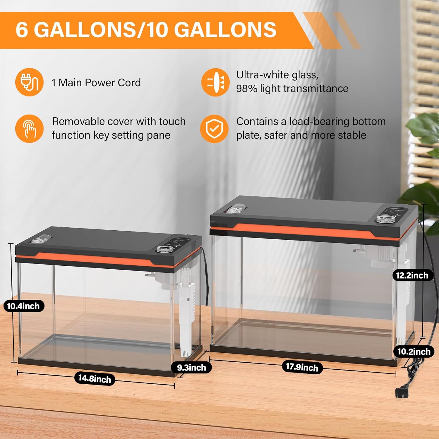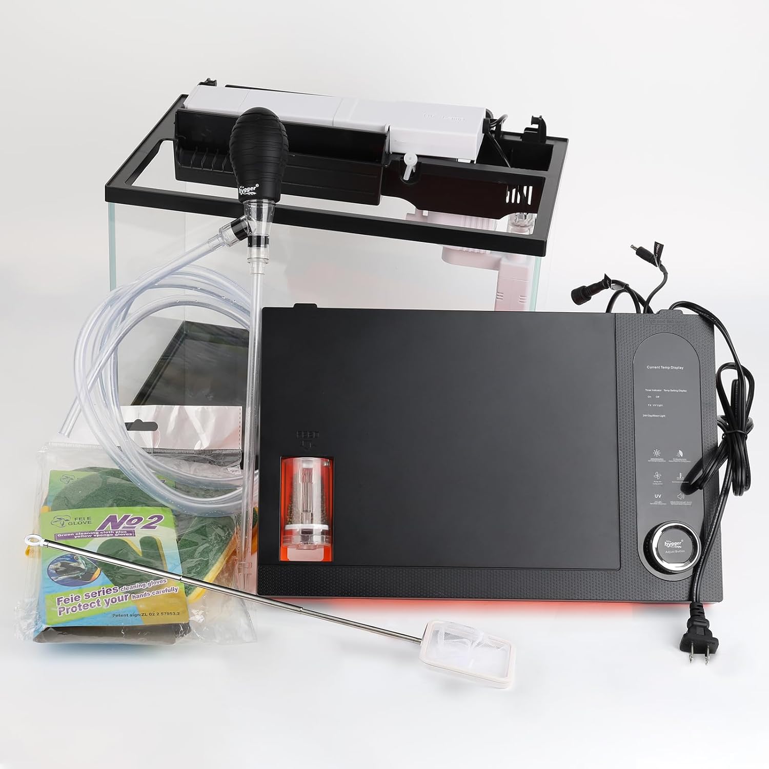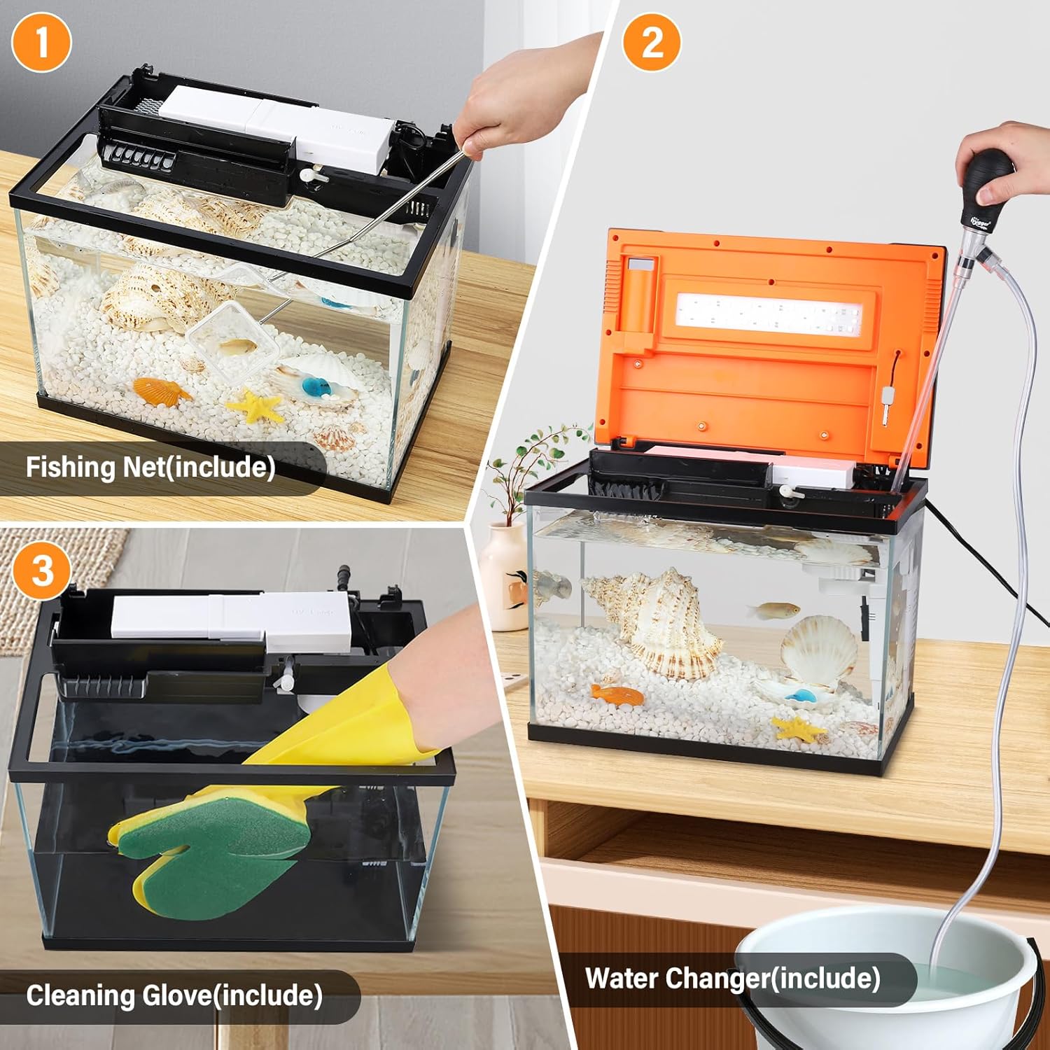 Ultra-Clear Glass Aquarium: It boasts a spacious 10-gallon capacity, and its four sides are crafted from high-transparency glass, allowing for a pristine, unobstructed view of your aquatic inhabitants from every angle, delivering a captivating visual experience. Additionally, the aquarium starter kit features a sturdy baseplate that ensures stability, prevents slipping, and minimizes vibrations for a serene home aquarium.