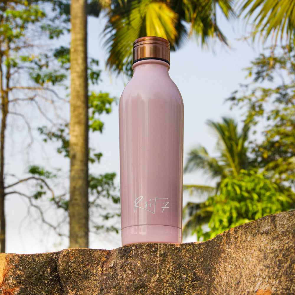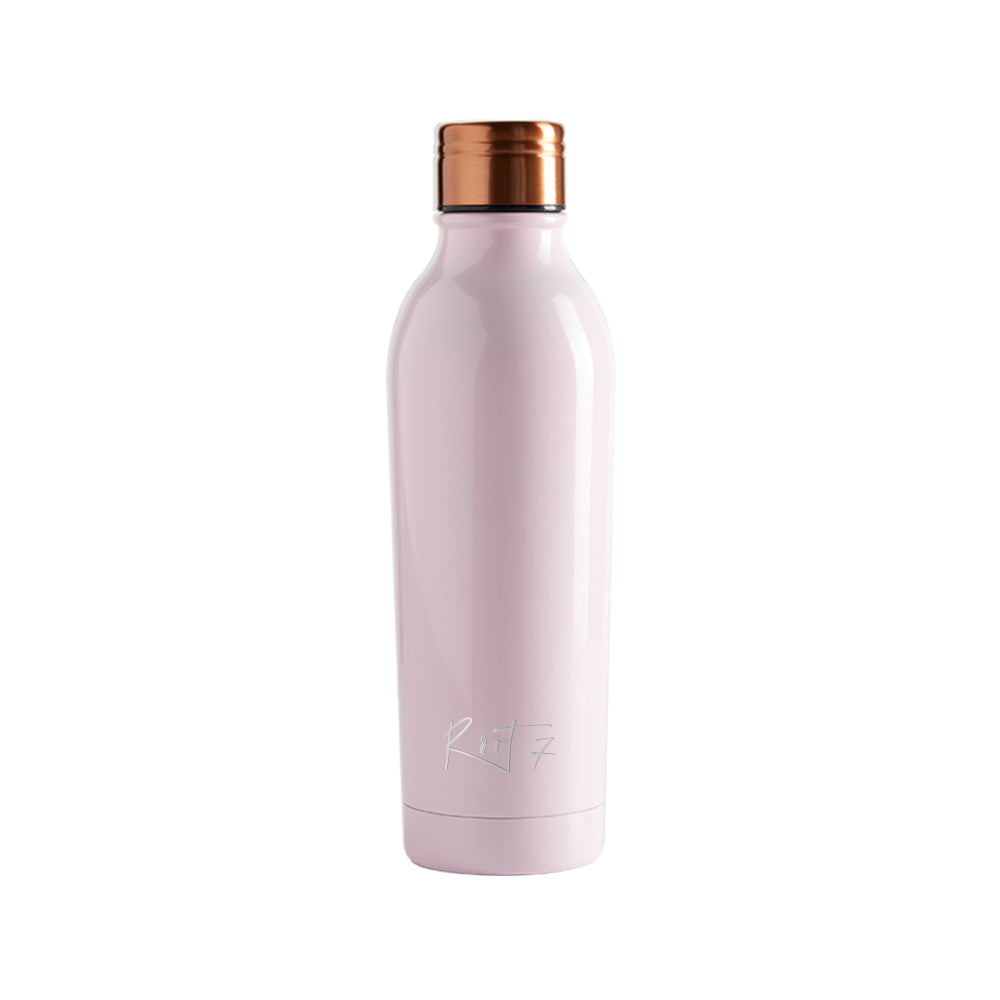 - This light pink water bottle is vacuum insulated with a triple layer of high-grade 18/8 stainless steel and a single layer of copper that boosts the thermal properties of the bottle keeping your drinks hot for up to 20 hours and cold for 30 hours. All Root7 bottles are leak-proof and sweat proof so you needn't worry about any unfortunate spills in your bag.